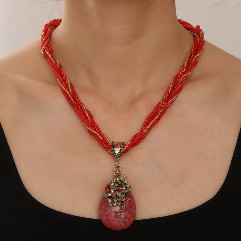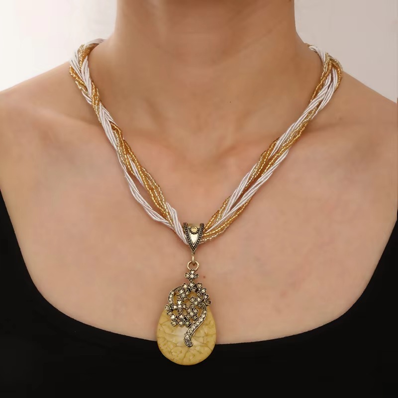 Ethnic Resin Stone Pendant Necklace