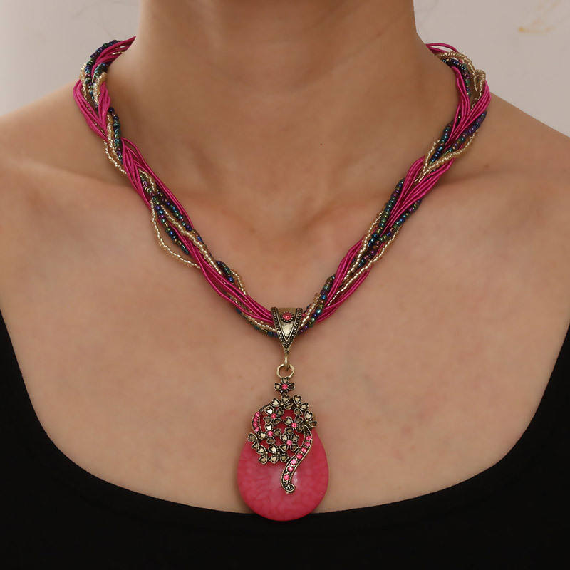 Ethnic Resin Stone Pendant Necklace